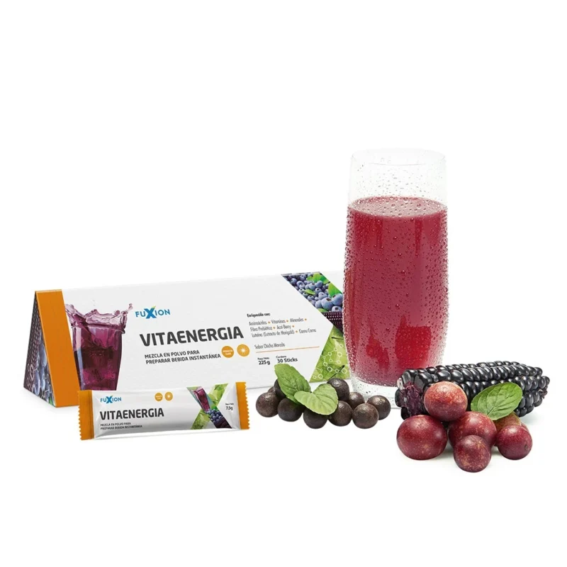 Vitaenergia es una bebida funcional con delicioso sabor a Maíz Morado, creada por FuXion con ingredientes 100% naturales, llena de vitaminas y minerales.